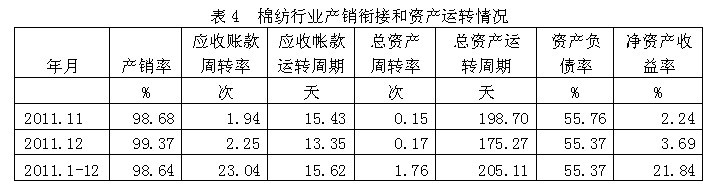 4棉紡行業(yè)產(chǎn)銷銜接和資產(chǎn)運(yùn)轉(zhuǎn)情況