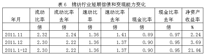 6棉紡行業(yè)短期償債和變現(xiàn)能力變化