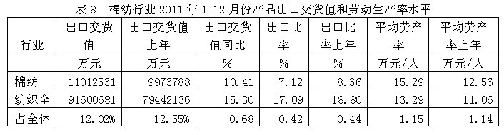 8棉紡行業(yè)產(chǎn)品出口交貨值和勞動(dòng)生產(chǎn)率水平