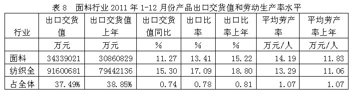 8面料行業(yè)產(chǎn)品出口交貨值和勞動生產(chǎn)率水平