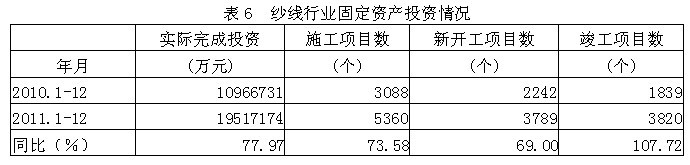 6紗線行業(yè)固定資產(chǎn)投資情況
