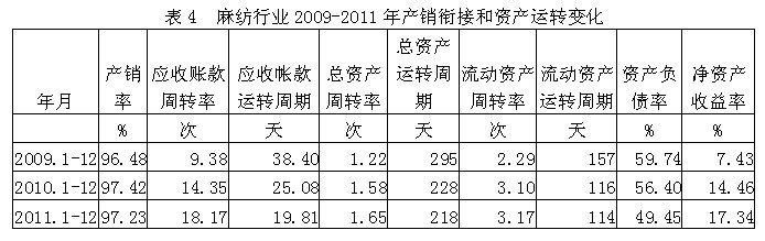 4麻紡行業(yè)產(chǎn)銷銜接和資產(chǎn)運轉情況