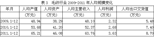 3 毛紡行業(yè)人均規(guī)模變化情況