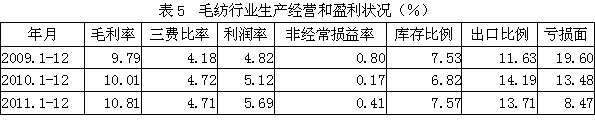 5 毛紡行業(yè)生產(chǎn)經(jīng)營(yíng)和盈利狀況