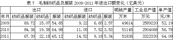 7 毛制紡織品服裝進(jìn)出口變化