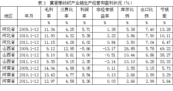 3 冀晉豫紡織產(chǎn)業(yè)鏈生產(chǎn)經(jīng)營和盈利狀況