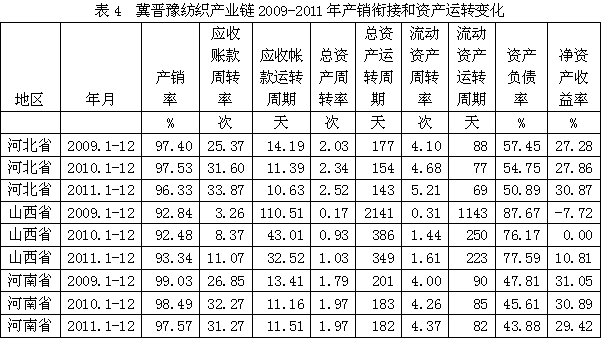 4 冀晉豫紡織產(chǎn)業(yè)鏈產(chǎn)銷銜接和資產(chǎn)運轉情況
