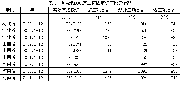 5 冀晉豫紡織產(chǎn)業(yè)鏈固定資產(chǎn)投資情況