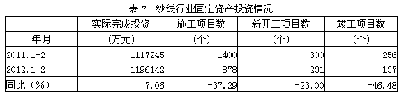 7紗線行業(yè)固定資產(chǎn)投資情況