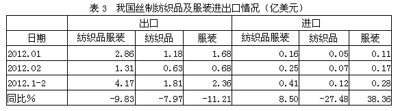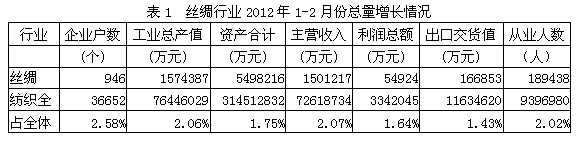 2012年1-2月絲綢行業(yè)經(jīng)濟(jì)運(yùn)行分析