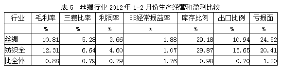 5絲絹紡織行業(yè)生產(chǎn)經(jīng)營和盈利狀況
