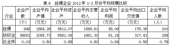 6絲絹紡織企業(yè)平均規(guī)模比較