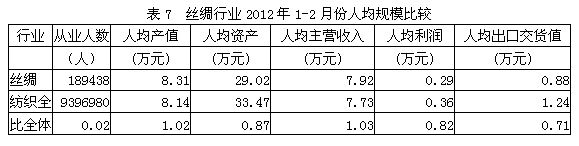 7絲絹紡織行業(yè)人均規(guī)模比較