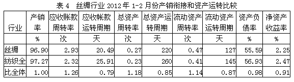 4絲絹紡織行業(yè)產(chǎn)銷銜接和資產(chǎn)運(yùn)轉(zhuǎn)情況