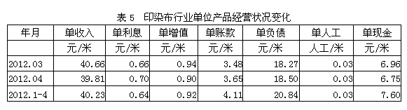 5印染布行業(yè)單位產(chǎn)品經(jīng)營狀況變化