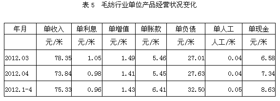 5毛紡行業(yè)單位產(chǎn)品經(jīng)營狀況變化