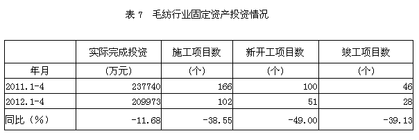 7毛紡行業(yè)固定資產(chǎn)投資情況