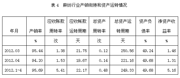 4麻紡行業(yè)產(chǎn)銷銜接和資產(chǎn)運(yùn)轉(zhuǎn)情況