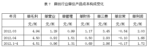 7麻紡行業(yè)單位產(chǎn)品成本構(gòu)成變化
