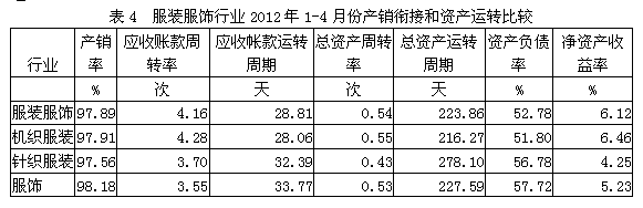 4服裝服飾行業(yè)產銷銜接和資產運轉情況