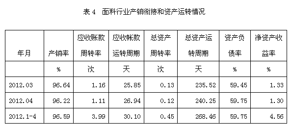 4面料行業(yè)產(chǎn)銷銜接和資產(chǎn)運(yùn)轉(zhuǎn)情況