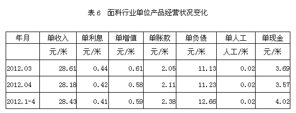 6面料行業(yè)單位產(chǎn)品經(jīng)營(yíng)狀況變化
