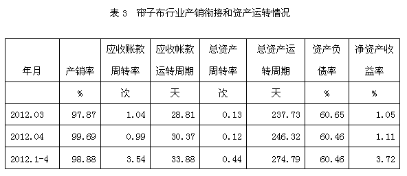 3簾子布行業(yè)產(chǎn)銷銜接和資產(chǎn)運(yùn)轉(zhuǎn)情況