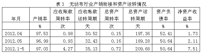 3無紡布行業(yè)產(chǎn)銷銜接和資產(chǎn)運(yùn)轉(zhuǎn)情況