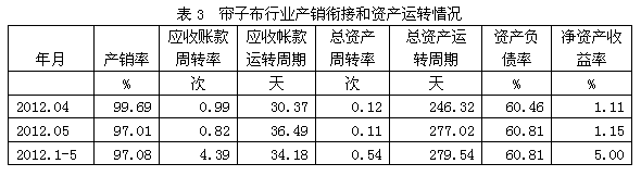3簾子布行業(yè)產(chǎn)銷(xiāo)銜接和資產(chǎn)運(yùn)轉(zhuǎn)情況