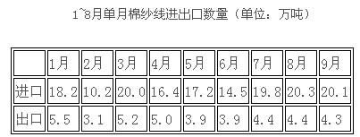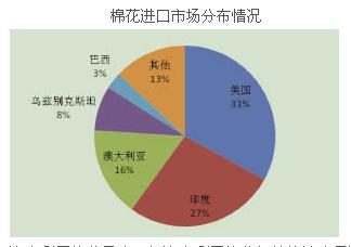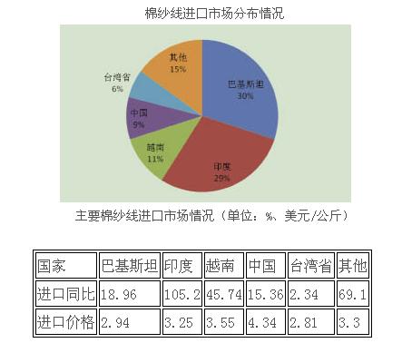 美、澳棉受追捧 1-9月,我國累計(jì)進(jìn)口棉花322.6萬噸,同比減少19.9%。由于2012年進(jìn)口棉花數(shù)量基數(shù)大,截至9月底,今年的配額發(fā)放數(shù)量少于去年同期,因此造成進(jìn)口棉花數(shù)量同比有兩位數(shù)的下降。“十一”國慶節(jié)后,國家新增部分加工貿(mào)易配額,因此預(yù)計(jì)在第四季度,或?qū)⒂瓉硪粋€(gè)進(jìn)口棉的小高峰。 穩(wěn)居我國進(jìn)口棉前三大市場(chǎng)的依次是美國、印度、澳大利亞,近三年前三大市場(chǎng)排列均無變化。前9個(gè)月我國累計(jì)從印度進(jìn)口棉花的數(shù)量較去年同期降幅最大,達(dá)35%,數(shù)量占比較往年下降約3-5個(gè)百分點(diǎn);我國自美國進(jìn)口棉花數(shù)量也有18%的同比下降。澳大利亞棉花近三年在中國市場(chǎng)頗受歡迎,截至今年8月底,我國自澳大利亞進(jìn)口的棉花數(shù)量同比增長(zhǎng)21%,連續(xù)兩年超過之前位列我國第三大棉花進(jìn)口市場(chǎng)的烏斯別克斯坦,躋身前三。 從價(jià)格上對(duì)比可發(fā)現(xiàn),澳大利亞棉花最貴,但澳大利亞棉花仍然快速大量進(jìn)入中國,這說明,國內(nèi)棉紡織企業(yè)對(duì)高品質(zhì)棉花的需求十分迫切。另外,美棉也始終保持進(jìn)口比重也是出于此原因。相比美棉、澳棉的高品質(zhì),印度棉在雜質(zhì)、異纖等方面略有欠缺,因此價(jià)格也是相對(duì)最低的。 今年前三季度,我國棉紗線進(jìn)口達(dá)156.8萬噸,同比增長(zhǎng)44%;1-9月累計(jì)出口棉紗線39.7萬噸,同比增長(zhǎng)22%。我國對(duì)棉紗線的進(jìn)口延續(xù)了2012年的熱度。