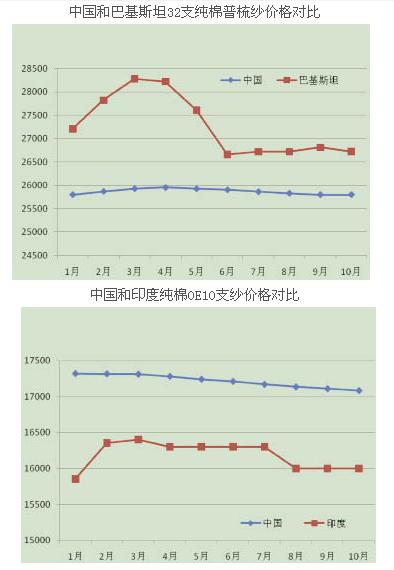 從今年1-10月,印度、巴基斯坦棉紗線價(jià)格均整體小幅下降,其原因是今年以來,印度、巴基斯坦國內(nèi)棉花價(jià)格整體下行,其中印度棉紗出口報(bào)價(jià)下調(diào)明顯。