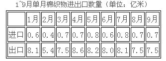 棉織物出口數(shù)量保持增長(zhǎng) 棉織物是我國主要的出口棉制紡織品,棉制紡織品貿(mào)易順差發(fā)揮著重要作用。今年前三季度,我國棉織物出口額占出口總額的52%,為112億美元。 1-9月,我國累計(jì)進(jìn)口棉織物6.0億米,同比下降3.4%;出口棉織物共計(jì)68.8億米,同比增長(zhǎng)19.0%。