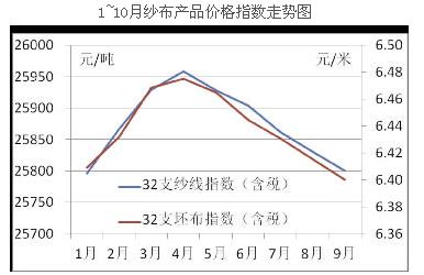 1~10月紗布產(chǎn)品價(jià)格指數(shù)走勢(shì)圖 根據(jù)調(diào)研了解,國(guó)內(nèi)中小紡織企業(yè)原料庫(kù)存相對(duì)少于大型企業(yè)。根據(jù)中棉行協(xié)9月跟蹤企業(yè)數(shù)據(jù)顯示,紡織企業(yè)棉花采購(gòu)有所下降,庫(kù)存環(huán)比減少。 棉花庫(kù)存減少主要包括幾方面原因:其一,7月底放儲(chǔ)結(jié)束已有一段時(shí)間,部分紡織企業(yè)前期購(gòu)買的儲(chǔ)備棉基本用完;其二,棉花收儲(chǔ)啟動(dòng)后,港口進(jìn)口棉銷售加快,市場(chǎng)資源緊缺;其三,儲(chǔ)備棉投放預(yù)期不明確,企業(yè)總體采購(gòu)積極性不高,小企業(yè)隨買隨用為主,庫(kù)存基本維持在1個(gè)月左右,資金相對(duì)寬裕的企業(yè)以觀望為主。 國(guó)內(nèi)外棉花價(jià)差擴(kuò)大 內(nèi)外棉花及棉紗價(jià)差仍然較大。2013年三季度,國(guó)內(nèi)棉價(jià)繼續(xù)大幅高于國(guó)際棉價(jià),并未延續(xù)年初以來小幅收窄的趨勢(shì),三季度價(jià)差平均為5132元/噸,較二季度相比每噸擴(kuò)大260元。截至10月22日,國(guó)內(nèi)棉花價(jià)格19515元/噸,國(guó)際棉花CotLookA指數(shù)價(jià)格89.4美分/磅。 巨大的國(guó)內(nèi)外棉價(jià)差導(dǎo)致了國(guó)內(nèi)棉紗價(jià)格同樣高于國(guó)際棉紗價(jià)格。2013年三季度,我國(guó)32支純棉普梳紗價(jià)格高于巴基斯坦同類產(chǎn)品約1000元/噸,高于二季度平均價(jià)差每噸500元左右;我國(guó)10支純棉轉(zhuǎn)杯紡紗高于印度同類產(chǎn)品1200元/噸,價(jià)差較二季度每噸擴(kuò)大300元左右。