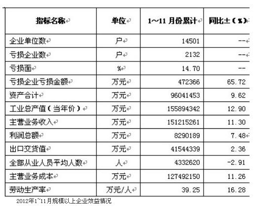 投資:降幅收窄行業(yè)景氣回升 據(jù)國家統(tǒng)計局?jǐn)?shù)據(jù),2012年1~12月我國服裝行業(yè)規(guī)模以上企業(yè)實(shí)際完成投資2610.92億元,與2011年同比增長25.97%,增幅下降了15個百分點(diǎn)。2012年二到四季度新開工項(xiàng)目環(huán)比分別為156.82%、52.79%、28.19%,與2011年同比降幅收窄,顯示行業(yè)景氣度回升。 效益:兩極分化 2012年,規(guī)模以上企業(yè)整體贏利水平基本平穩(wěn),虧損面逐步縮窄;規(guī)模以下企業(yè)各項(xiàng)指標(biāo)均出現(xiàn)較為明顯的下滑趨勢,且與規(guī)模以上企業(yè)存在著較大的差距;生產(chǎn)要素價格的持續(xù)上漲,也成為壓縮企業(yè)利潤空間的一大因素。 規(guī)上企業(yè):整體贏利水平基本平穩(wěn),虧損面逐步縮窄 根據(jù)國家統(tǒng)計局統(tǒng)計顯示,2012年1~11月,服裝行業(yè)規(guī)模以上(年主營業(yè)務(wù)收入2000萬元及以上)企業(yè)14501家,累計主營業(yè)務(wù)收入15121.53億元,同比增長11.30%;利潤總額829.02億元,同比增長7.48%。1~11月份虧損企業(yè)2132家,虧損面為14.70%,如下圖所示,虧損面逐步縮窄。從業(yè)人數(shù)達(dá)433.26萬人,同比下降2.91%。