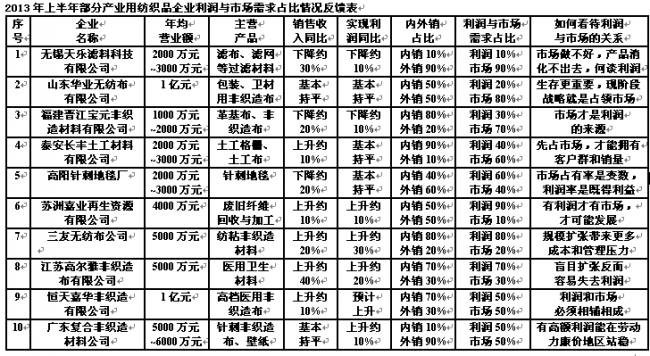 上半年產(chǎn)業(yè)用紡織品企業(yè)在市場份額和利潤爭奪中戰(zhàn)略權(quán)衡