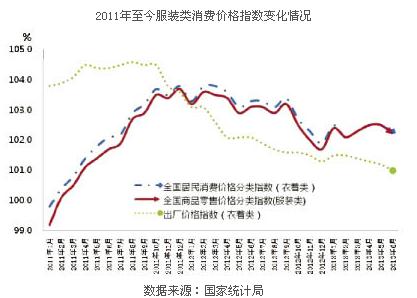 從價格方面觀察,根據(jù)國家統(tǒng)計局數(shù)據(jù),2013年1~6月,全國服裝類商品零售價格同比上漲2.3%,較上年同期下降1個百分點。衣著類居民消費價格同比上漲2.4%,較上年同期下降1.1個百分點。其中服裝價格上漲2.5%,鞋類價格上漲1.6%。2013年1~6月衣著類生產(chǎn)者出廠價格同比上漲1.3%,較上年同期下降1.2個百分點?! ?/p>
