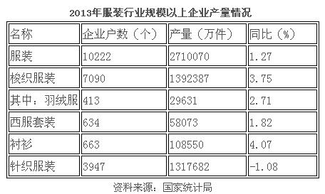 2013年,國際經濟緩慢溫和復蘇,美日經濟復蘇勢頭總體較好,歐元區(qū)相對疲軟;新興經濟體增速仍遠高于發(fā)達國家,但增長集體放緩;國內經濟方面,GDP仍然保持7.7%的同比增速,呈現(xiàn)出整體平穩(wěn)、穩(wěn)中有進、穩(wěn)中向好的態(tài)勢。 在此背景下,2013年,我國服裝產業(yè)運行總體平穩(wěn),規(guī)模以上企業(yè)產量微增,增速趨緩;服裝內銷有所增長,但增速進一步放緩;出口實現(xiàn)恢復性增長,但增幅前高后低,逐月趨緩;投資保持增長,東部仍是投資重點地區(qū);規(guī)模以上企業(yè)效益增長,但盈利能力未見明顯提升,從全行業(yè)口徑來看,規(guī)模以上企業(yè)兩極分化明顯,中小企業(yè)運營依然艱難。 服裝生產 向中西部轉移明顯且持續(xù) 2013年,由于經濟因素及全球需求不振,我國服裝產量增長乏力。其中,規(guī)模以上服裝企業(yè)產量增速放緩明顯,規(guī)模以下企業(yè)產量減少。東部地區(qū)作為主產區(qū),產量占全國比重持續(xù)下降,產業(yè)進一步向中西部地區(qū)轉移。 2013年,服裝行業(yè)規(guī)模以上企業(yè)累計完成服裝產量271.01億件,同比增長1.27%,增速較2012年同期回落4.93個百分點。其中,梭織服裝139.24億件,同比增長3.75%;針織服裝131.77億件,同比下降1.08%。 由于國內外需求、生產要素成本等諸多方面因素影響,近年來,服裝行業(yè)產量增速一直呈下降趨勢。根據(jù)國家統(tǒng)計局數(shù)據(jù),近三年來,規(guī)模以上服裝企業(yè)產量增速從2010年上半年的17.68%,降至2013年的1.27%。2013年,規(guī)模以上服裝企業(yè)產量增速較2012年回落4.93個百分點,較2011年回落6.87個百分點,較2010年回落17.33個百分點,增速明顯趨緩。 規(guī)模以下企業(yè)的生產狀況明顯遜于規(guī)模以上企業(yè)。根據(jù)中國服裝協(xié)會對孫村、茶山、沙溪、黃石、金壇、平湖等18個服裝產業(yè)集群近200家企業(yè)的跟蹤調研,2013年1~9月,11.69%的規(guī)模以下企業(yè)關停,總產量同比下降6.58%。 按照地區(qū)來看,東部地區(qū)仍是我國服裝業(yè)主要產區(qū),受生產成本等因素影響,該地區(qū)服裝產量占全國總產量的比重減少,而中西部地區(qū)占全國總產量的比重則有所增加。 根據(jù)國家統(tǒng)計局統(tǒng)計,2013年,東部地區(qū)服裝行業(yè)規(guī)模以上企業(yè)完成服裝產量215.86億件,同比下降0.87%,占全國服裝總產量比重79.65%,下降1.72個百分點;中、西部地區(qū)產量同比分別增長10.16%和15.48%,占全國服裝總產量比重分別提升1.48和0.24個百分點。 受土地、能源、勞動力等生產要素成本快速上升,和生態(tài)環(huán)境約束,資源密集型產業(yè)和勞動密集型產業(yè)的發(fā)展受到制約,產業(yè)結構優(yōu)化升級壓力增加,東南沿海地區(qū)紡織服裝產業(yè)向中西部持續(xù)進行梯度轉移。 內銷市場 規(guī)模擴大增速放緩 2013年,我國服裝內銷市場規(guī)模繼續(xù)擴大,但受經濟減速影響,消費者消費意愿減弱、需求降低,內銷增速放緩。從全年來看,2013年1季度,服裝內銷增速承接2012年4季度趨勢,下降較為明顯。隨后幾個季度,內銷增速保持平穩(wěn),較往年增速放緩明顯。 國家統(tǒng)計局數(shù)據(jù)顯示,2013年,社會消費品零售總額234380億元,比2012年名義增長13.1%(扣除價格因素實際增長11.5%),增速比2012年同期回落1.2個百分點。其中,限額以上企業(yè)(單位)消費品零售額118885億元,同比增長11.6%,比2012年同期增速回落3個百分點。服裝鞋帽、針紡織品類商品零售額累計實現(xiàn)11414億元,同比增長11.6%,比2012年同期增速回落6.4個百分點。