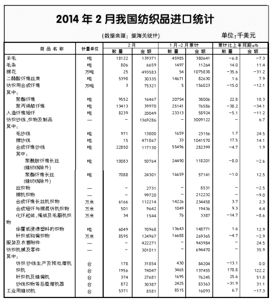 2014年2月全國(guó)紡織品服裝進(jìn)出口形勢(shì)概述