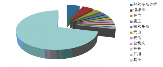 根據(jù)中華全國商業(yè)信息中心的統(tǒng)計(jì),2014年1月,全國重點(diǎn)大型零售企業(yè)羊毛衫銷售前十位品牌市場綜合占有率合計(jì)為28.6%,其中,鄂爾多斯奧群、恒源祥和春竹占據(jù)前三位。
