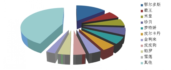 根據(jù)中華全國商業(yè)信息中心的統(tǒng)計(jì),2014年1月份全國重點(diǎn)大型零售企業(yè)羊絨衫銷售前十位品牌市場綜合占有率合計(jì)為57.1%,鄂爾多斯、鹿王和米皇占據(jù)前三位。