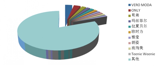 根據(jù)中華全國商業(yè)信息中心的統(tǒng)計(jì),2014年2月,全國重點(diǎn)大型零售企業(yè)女裝銷售前十位品牌市場綜合占有率合計(jì)為19.4%,VERO MODA、ONLY和哥弟占據(jù)前三位。