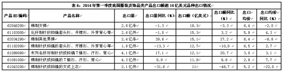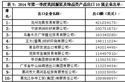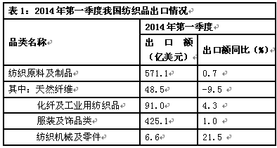 2014年一季度紡織業(yè)出口數(shù)據(jù)