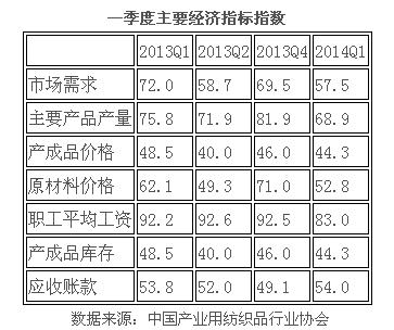 國內(nèi)市場是推動產(chǎn)業(yè)用紡織品行業(yè)發(fā)展的最大動力。國家在基礎(chǔ)設(shè)施建設(shè)、環(huán)境治理、衛(wèi)生保健、安全防護、軍事國防等方面的投入不斷加大,為產(chǎn)業(yè)用紡織品行業(yè)的快速發(fā)展和骨干企業(yè)成長提供廣闊空間。今年一季度我國產(chǎn)業(yè)用紡織品行業(yè)開局良好,銷售、利潤和投資均繼續(xù)保持快速增長,經(jīng)濟效益持續(xù)好轉(zhuǎn),出口保持了6.57%的增速。 今年一季度我國產(chǎn)業(yè)用紡織品行業(yè)開局良好,銷售、利潤和投資均繼續(xù)保持快速增長,經(jīng)濟效益持續(xù)好轉(zhuǎn);同時受美國和歐盟市場需求增長的帶動,出口保持了6.57%的增速。根據(jù)協(xié)會調(diào)研,一季度企業(yè)的景氣指數(shù)為78.3,比去年同期略有增長,企業(yè)對今年全年的預(yù)期信心指數(shù)為80.1,比2013年有所回升,這些均表明企業(yè)對當(dāng)期的經(jīng)營狀況比較滿意,同時對全年的業(yè)績也有比較好的預(yù)期。