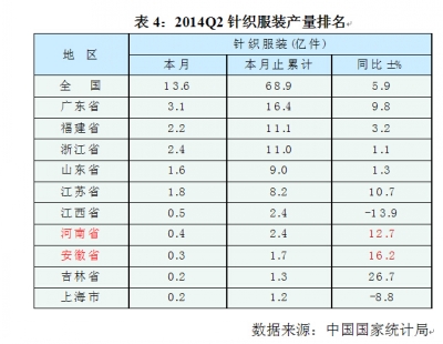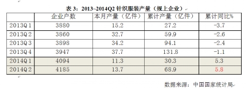 2014年第2季度中國針織行業(yè)運(yùn)行分析
