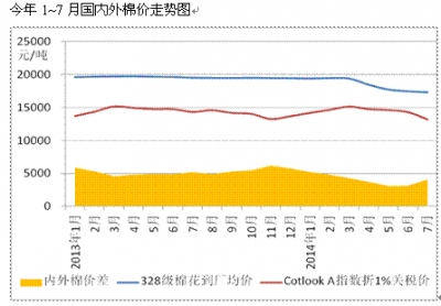 分析:棉花目標(biāo)價(jià)格補(bǔ)貼政策出臺(tái),紗、布價(jià)格持續(xù)陰跌,純棉、化纖短纖紗、布代表品種價(jià)格均環(huán)比下滑,市場(chǎng)觀望情緒濃郁。下游訂單極為謹(jǐn)慎,棉紡織企業(yè)不得不降價(jià)并加快出貨速度以規(guī)避風(fēng)險(xiǎn)。也有企業(yè)加大非棉纖維使用量,以規(guī)避棉花降價(jià)帶來的風(fēng)險(xiǎn)。 棉花政策加重市場(chǎng)恐慌情緒 數(shù)字:1~2月棉花市場(chǎng)價(jià)格基本平穩(wěn),受季節(jié)因素影響,紡織企業(yè)訂單放緩。3月,市場(chǎng)傳言放儲(chǔ)政策將有所調(diào)整,內(nèi)棉價(jià)格開始松動(dòng),外棉價(jià)格上漲3%,國(guó)內(nèi)外棉花價(jià)差有所收窄,紡企訂單以補(bǔ)貨為主。4月,儲(chǔ)備棉投放價(jià)格下調(diào)至17250元/噸,同期國(guó)家明確取消棉花臨時(shí)收儲(chǔ),將實(shí)行目標(biāo)價(jià)格補(bǔ)貼政策。4~5月內(nèi)棉大幅下跌,跌幅大于外棉跌幅,國(guó)內(nèi)外棉價(jià)差縮小至3000元/噸。紡企原料及紗線庫(kù)存貶值,訂單再度放緩,主要以消化庫(kù)存為主。6~7月,內(nèi)棉價(jià)格逐步跌至儲(chǔ)備棉成交價(jià)附近,跌幅放緩,外棉仍較大幅度下跌,價(jià)差回升至4000元/噸。 分析:今年上半年,棉花政策不斷調(diào)整,國(guó)內(nèi)棉價(jià)處于下行通道,紡織企業(yè)訂單整體放緩、謹(jǐn)慎,接單風(fēng)險(xiǎn)不斷增加,市場(chǎng)觀望情緒濃郁,恐慌情緒加重。 行業(yè)虧損面加大 數(shù)字:根據(jù)中棉行協(xié)跟蹤企業(yè)數(shù)據(jù)顯示,今年1~6月,棉紡織行業(yè)主營(yíng)業(yè)務(wù)收入累計(jì)同比下降1.4%,較2013年相比下降了7.98個(gè)百分點(diǎn);利潤(rùn)總額累計(jì)同比減少9.0%,較2013年相比下降了14.04個(gè)百分點(diǎn);從業(yè)人員總數(shù)累計(jì)同比下降4.4%,較2013年相比增長(zhǎng)了2.09個(gè)百分點(diǎn)。行業(yè)虧損面有所加大,截至6月底,虧損面約28.3%,比2013增加了8.3個(gè)百分點(diǎn)。 分析:棉紡織行業(yè)運(yùn)行質(zhì)效下滑,致使棉紡織企業(yè)虧損面增加大?;旒徝藜喓瓦M(jìn)口紗不斷爭(zhēng)奪純棉紗市場(chǎng),也使得國(guó)產(chǎn)棉紗銷路無法繼續(xù)打開,反而面臨萎縮。多數(shù)企業(yè)反映,目前企業(yè)訂單以降價(jià)走量為主,主要是維持低庫(kù)存,以減少貶值損失。 進(jìn)出口 進(jìn)口棉同比減少42.2% 數(shù)字:今年1~6月我國(guó)累計(jì)進(jìn)口棉花數(shù)量為139.4萬(wàn)噸,同比減少42.2%。從進(jìn)口棉花市場(chǎng)分布看,今年1~6月我國(guó)印度棉進(jìn)口數(shù)量最大,達(dá)69.2萬(wàn)噸,占進(jìn)口總量的50%,其次是美棉,占進(jìn)口總量的28%。 分析:從單月進(jìn)口棉花情況看,我國(guó)進(jìn)口棉呈減少趨勢(shì)。主要原因包括兩方面,一是由于自4月起進(jìn)口棉花滑準(zhǔn)稅配額依據(jù)儲(chǔ)備棉成交量發(fā)放,配額數(shù)量同比大幅減少;二是上半年國(guó)內(nèi)外棉價(jià)差有所收窄。從實(shí)際情況看,棉紡織企業(yè)對(duì)外棉尤其是高等級(jí)棉花的需求仍然很大。 棉制紡織品進(jìn)出口雙降 數(shù)字:今年1~6月我國(guó)棉制紡織品進(jìn)出口貿(mào)易總額為174億美元,同比下降5.5%,其中,棉制紡織品出口額為132.9億美元,同比下降5.9%,進(jìn)口額為41.1億美元,同比下降4.2%。 2012、2013及2014年1~6月我國(guó)棉制紡織品進(jìn)口增速變化
