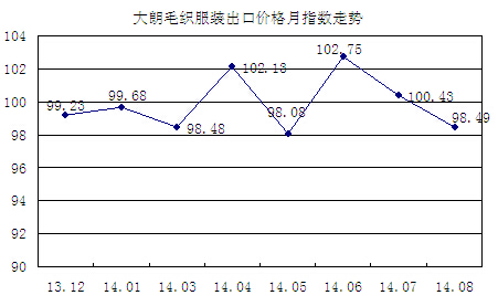 8月大朗女裝和男裝毛織服裝出口價(jià)格指數(shù)總體下行。女裝各種款式毛織服裝出口價(jià)格普遍下跌,大朗女裝毛織服裝出口價(jià)格指數(shù)報(bào)98.39,環(huán)比下跌2.13%;男裝毛織服裝出口價(jià)格指數(shù)報(bào)98.71,環(huán)比下跌1.43%,長(zhǎng)袖套頭衫和長(zhǎng)袖開(kāi)胸衫出口價(jià)格下跌,拖累大朗男裝毛織服裝出口價(jià)格下行。