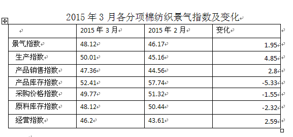 2015年3月棉紡織景氣呈現(xiàn)季節(jié)性反彈