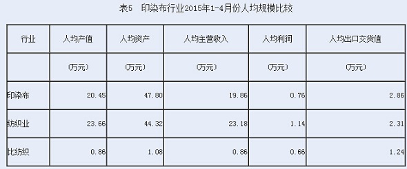 5印染布行業(yè)人均規(guī)模比較