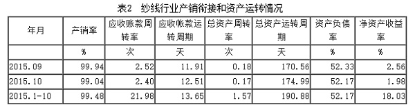 2.紗線行業(yè)產(chǎn)銷銜接和資產(chǎn)運(yùn)轉(zhuǎn)情況