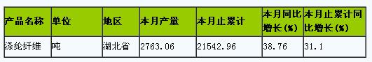 2013年1-9月,湖北省滌綸纖維產(chǎn)量為21542.96噸,同比增長31.1%。